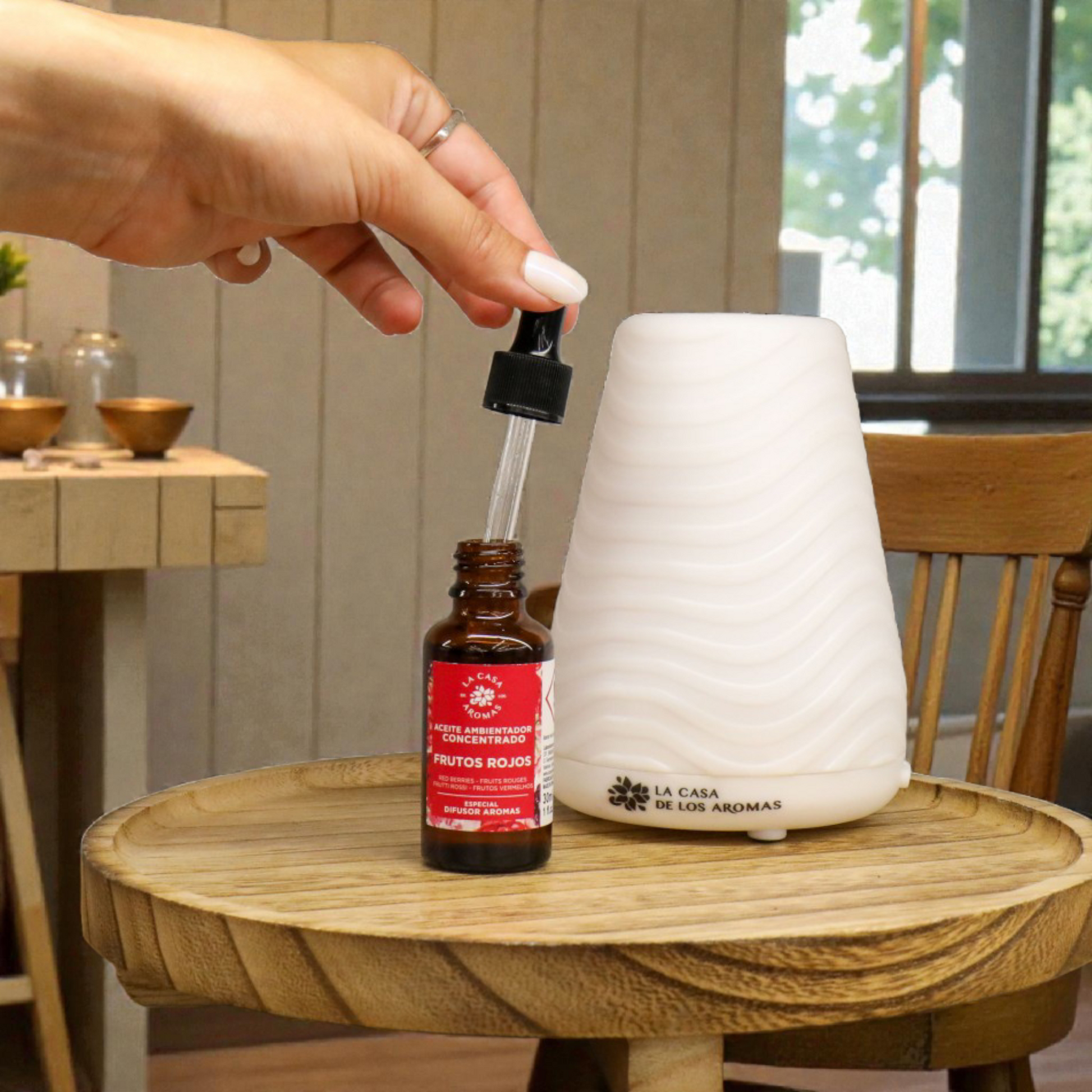 Perfuma tus espacios con el aroma dulce y vibrante de los frutos rojos. Este aceite ambientador concentrado está especialmente diseñado para usar en difusores, brindando una fragancia intensa y duradera que transforma cualquier ambiente en un espacio cálido y agradable. Con solo unas gotas, lograrás un perfume envolvente ideal para el hogar, la oficina o locales comerciales.